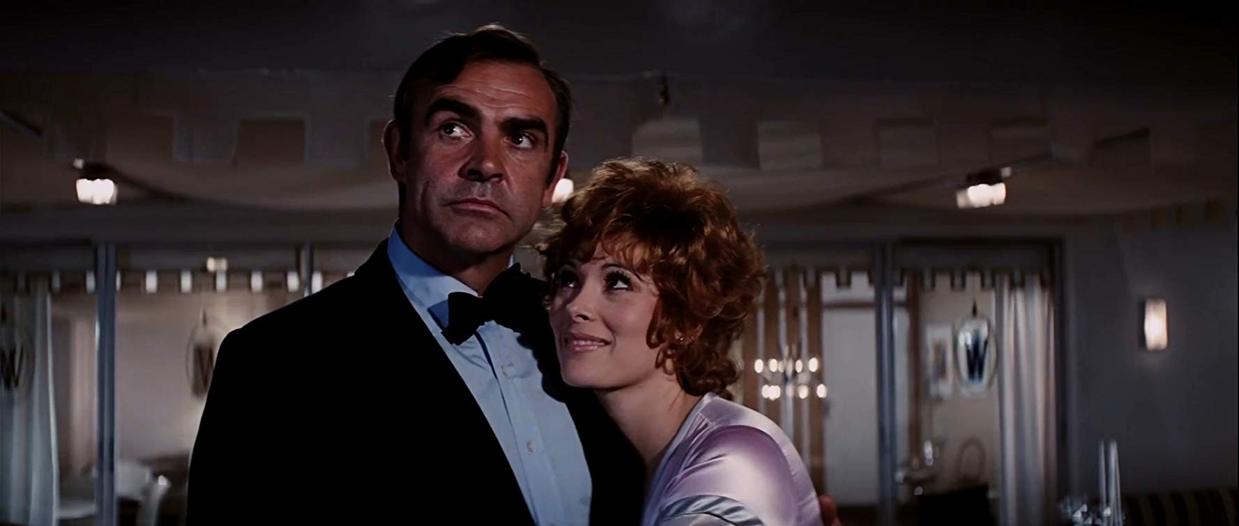 Pero Connery es realmente Bond, sea interpretándolo lineal o jugando con el personaje, como en este caso. Por ejemplo, la persecución en buggy lunar, que roza ciertamente lo ridículo, pero que ha veces es normal en algunas escenas de la saga. En general, buena parte del filme parece emular las persecuciones con destrozo masivo de autos, muy propio del cine americano, aunque en esos momentos estaba en pañales. Mención aparte merece el histórico error de la persecución en Las Vegas, cuando el Mustang rojo entra a un callejón sin salida en dos ruedas, volteado hacia la derecha y saliendo en sentido contrario (error que recién percibieron en post-producción y que corrigieron con el auto girando de un lado a otro en medio de un callejón estrecho (!)).
