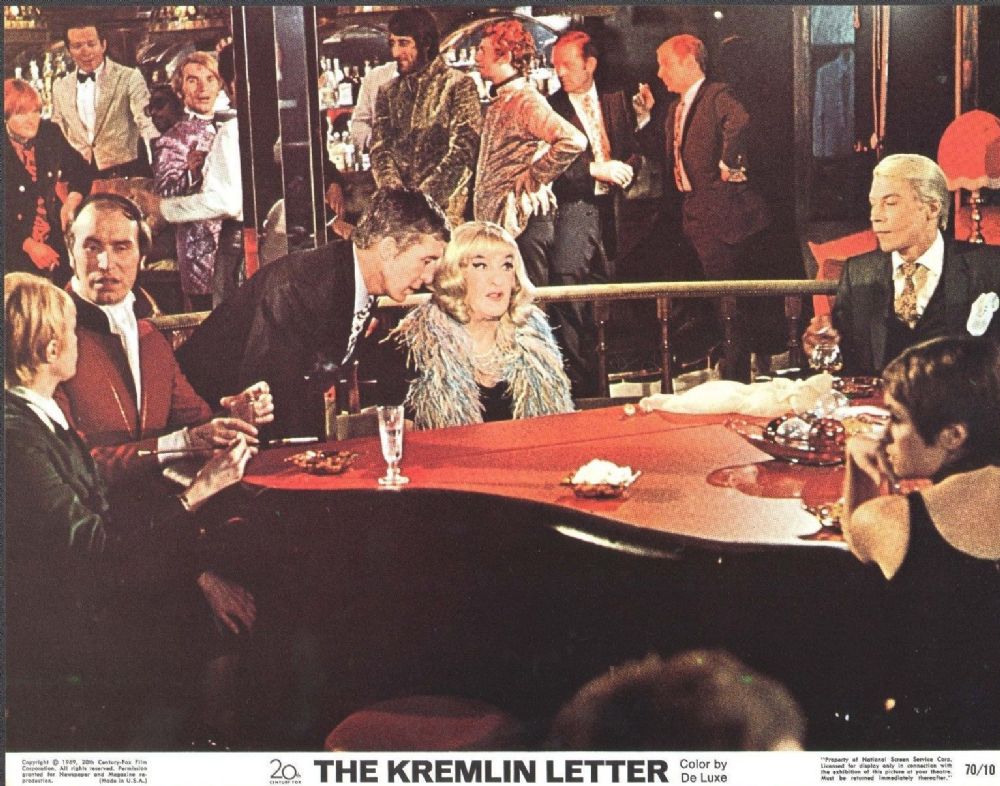 Título original: The Kremlin Letter   Año: 1970   Duración: 120 minutos   País: Estados Unidos   Dirección: John Huston   Guion: John Huston, Gladys Hill (Novela: Noel Behn)   Música: Robert Drasnin   Fotografía: Edward Scaife   Reparto: Bibi Andersson, Richard Boone, Nigel Green, Dean Jagger, Lila Kedrova, Micheál MacLiammóir, Patrick O’Neal, Barbara Parkins, Ronald Radd, George Sanders, Raf Vallone, Max von Sydow, Orson Welles   Productora: 20th Century Fox   Género: Thriller | Espionaje. Guerra Fría