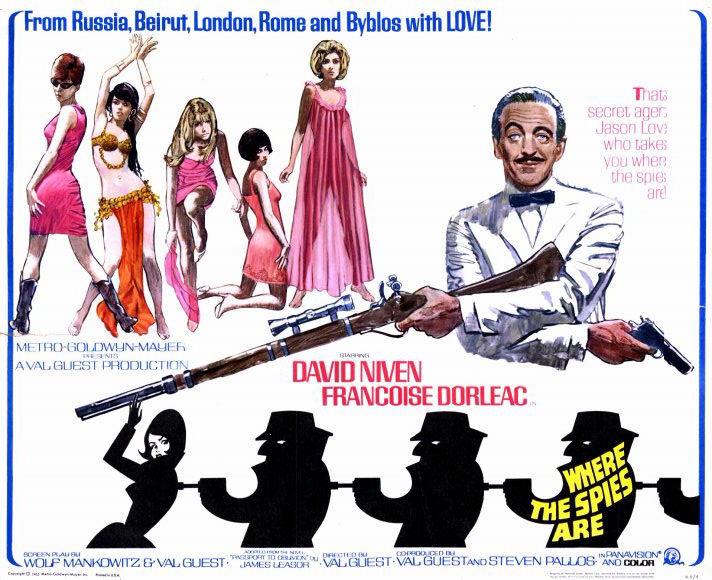 ‘Where the Spies Are’ fue una de tantas películas de espionaje que se producían a mediados de los 60, con la salvedad de que en esta ocasión no es un apuesto agente secreto el protagonista, sino un sencillo médico inglés. El film está basado en la novela de James Leasor ‘Passport To Oblivion’ y uno de sus mayores atractivos es la presencia de David Niven en el papel protagonista, con su habitual aplomo y seguridad. Junto a él aparece Françoise Dorléac, actriz francesa, hermana de Catherine Deneuve que falleció a la temprana edad de 25 años a causa de un accidente automovilístico, justo dos años después de protagonizar el film.