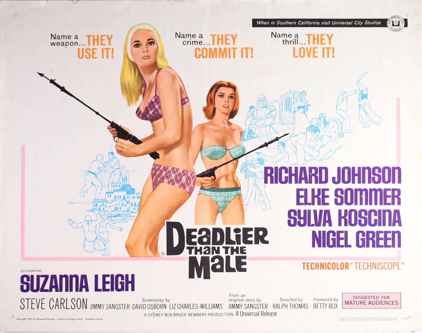«Deadlier than the male» es la primera de dos versiones sobre el personaje y que tendrían lugar a finales de la década (el otro filme sería Some Girls Do de 1969). Como se puede ver con los nombres de los personajes de la trama, los archienemigos de Drummond están presentes aunque los roles están bastante cambiados. Además toda la historia tiene un tono de comedia ligera que no figuraba en el original literario.